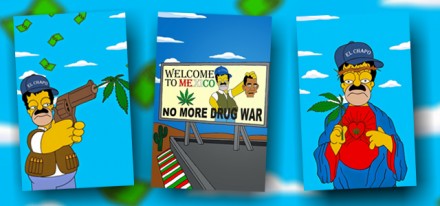 El célebre personaje de la serie animada estadunidense Los Simpson, Homero Simpson, personifica, por ejemplo, al exlíder del Cártel de Sinaloa, y a Pablo Escobar Gaviria, el fundador del Cártel de Medellín –ultimado en 1993–, en una campaña contra las drogas.