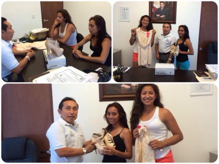“Estas dos muchachas llegaron con un servidor para pedir un apoyo para lo que se menciona de un vestido y de unos zapatos. Ellas van a participar en certamen que está organizando la Cecyte”, arguyó Pech.