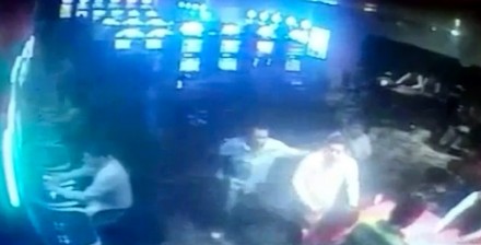 Enseguida, el sujeto que llevaba el arma larga sorprende por la espalda a Hernández Flores, lo jala para someterlo y se lo lleva prácticamente a empujones, mientras que el otro atacante apunta con su arma al resto de las personas que se encontraban en la mesa de juego.