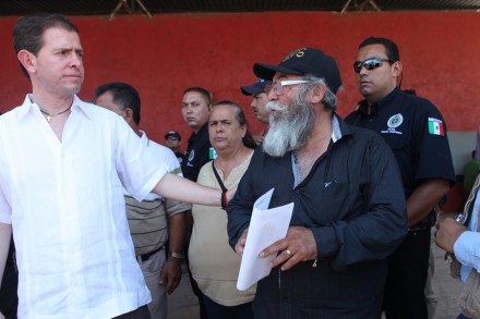 Antes del traslado, el comisionado federal en la entidad, Alfredo Castillo, sostuvo una reunión a puerta cerrada con coordinadores y comandantes de las autodefensas y mandos de las policías Federal y Ministerial, así como con efectivos del Ejército y la Marina.