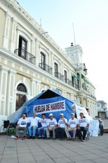 COLIMA, Col. (proceso.com.mx).- Treinta y tres días después del inicio de la huelga de hambre, los siete catedráticos de la Universidad de Colima instalados afuera del Palacio de Gobierno resienten ya en sus cuerpos los estragos derivados de la falta de alimentos.