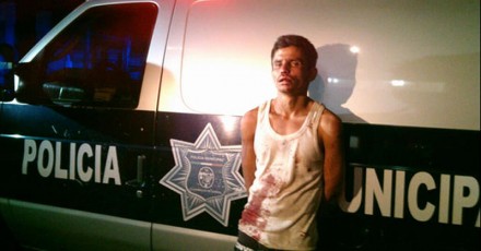 A poca distancia del lugar fue localizado el presunto responsable a quien le encontraron una botella con el solvente que acostumbra inhalar para drogarse.