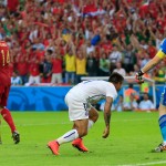 Al minuto 19, Eduardo Vargas recibió el balón de Charles Aranguiz dentro del área, amagó, fintó a Iker Casillas que se quedó tirado en el pasto y con la punta del zapato empujó la pelota al desolado arco español.