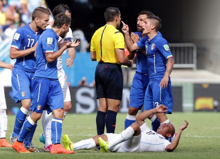 MÉXICO, D.F. (apro).- Tras la controversia que generó el mordisco del delantero uruguayo Luis Suárez al defensa italiano Giorgio Chielini, la prensa italiana descargó contra el árbitro mexicano Marco Antonio Rodríguez, a quien señalan sus errores y por no sancionar la falta del controvertido jugador de la selección charrúa.