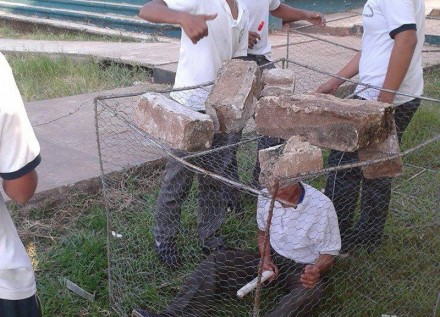 Recuerda que apenas hace unos días, Filiberto y amigos lo agarraron en la plaza cívica, lo agredieron y tiraron al suelo, lo amarraron con cinta canela de los pies y manos, lo encerraron en una jaula y le pusieron ladrillos en la cabeza.