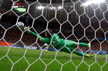 Apenas a los 21 minutos, rechazó el remate a puerta de Van Persie. El rebote cayó en Sneijder, quien al igual que su compañero tampoco tuvo fortuna.