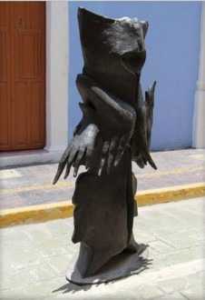 La pieza La sombra del ahuehuete, de bronce, resultó dañada la madrugada de ayer, luego de que durante una riña la derribaran un par de jóvenes ebrios que salían de uno de los bares al aire libre que funcionan en la calle 59, en la que converge el corredor cultural donde fue montada la exposición.