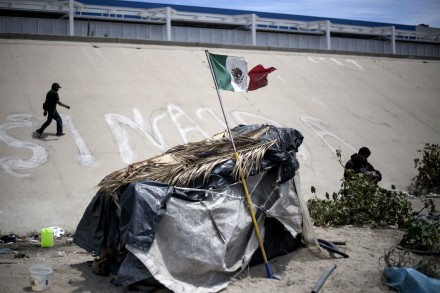 Una choza hecha de desperdicios en el área de El Bordo en Tijuana.