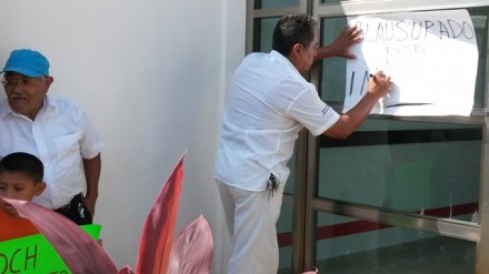El vocero de la Coordinadora Nacional de Madres, Padres y Tutores en Defensa de la Nación, José Alberto Pech TPEC, colocó en la puerta principal de la sede una leyenda con la frase: “Clausurados por Ineptos”.
