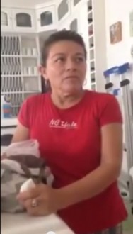 Luego la mujer la acusa de robar comida y de abusar de su confianza, “pero no te dio mucha pena agarrar un traste de mi casa y llevarte un chile en nogada para alguien de tu familia. Se te da (comida) de sobra, tú puedes comer todo lo que nosotros comemos. Yo no voy a alimentar a toda tu familia”.