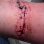 - La sutura en uno de sus brazos.