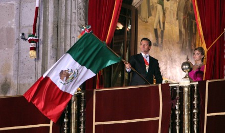 “Peña, Peña, Peña Nieto; Peña, Peña, Peña Nieto”, corea la muchedumbre frente al balcón central y responden con vivas a la arenga tradicional. Entonces, los cercos policiales se abren y el gentío que esperaba desde las 9:00 puede pasar apenas para ver algo de la pirotecnia que se prolonga por 15 minutos.