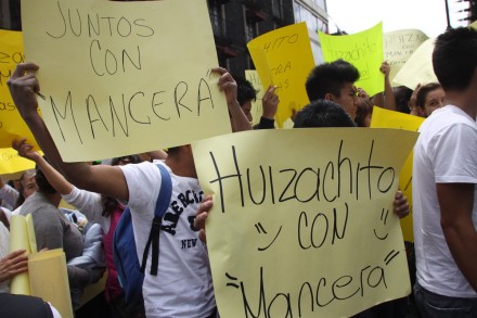 Con días de anticipación, los manceristas instalaron campamentos en el cruce de las calles de Allende y Donceles y en pago a sus favores el GDF les puso dos pantallas gigantes para seguir las incidencias del gobernante capitalino.