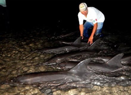 Personal de la delegación federal se trasladó al lugar indicado, donde encontró 12 delfines, uno de los cuales estaba muerto.