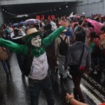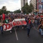 Ya sobre la Avenida Juárez, se detuvieron por unos momentos para lanzar consignas como “¡México sin PRI, México sin PRI!”, “¡2 de octubre, no se olvida!”, “¡De norte a sur, de este a oeste, ganaremos esta lucha, cueste lo que cueste!” y “¡El que no brinque es Peña, el que no brinque es Peña!”… Sólo atraían las miradas de quienes transitaban por las grandes avenidas de la ciudad.
