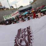Unos jóvenes llevaron enormes pancartas para pedir la libertad de los presos políticos Abraham Cortéz, Alejandro Bautista y Mario González, detenidos durante la protesta del 2 de octubre del 2013.