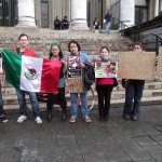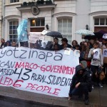 El grupo London Mexico Solidarity, que convocó a la manifestación a través de la red Facebook, emitió un mensaje que destacaba: “Ante los recientes hechos de represión en contra de estudiantes de la Normal Rural de Ayotzinapa, Guerrero, perpetrados por policías municipales desde el 26 de septiembre, desde Londres nos unimos a la demanda de las familias de presentación con vida de los estudiantes desaparecidos y juicio y castigo a los responsables”.