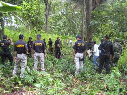 En cumplimiento de la orden de cateo número 34/2014 otorgada por el Juzgado Segundo del Ramo Penal del Poder Judicial del estado, efectivos de la Policía Federal Ministerial (PFM), la Agencia de Investigación Criminal (AIC), la Gendarmería Nacional y la Policía Estatal Fronteriza llegaron hasta ese sitio.