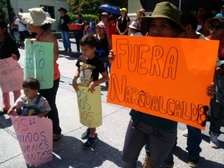 “Ojo por ojo y diente por diente, lo mismo al gobernador para que vea lo que se siente”, gritaban en coro hombres y mujeres, quienes destacaban una de las características negativas del mandatario al lanzar: “Aguirre borracho, libera a los muchachos”.