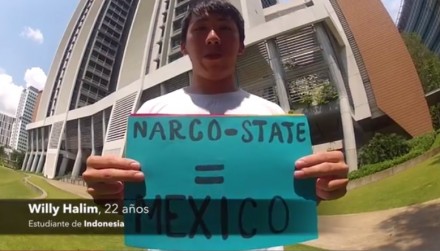 Los estudiantes, de países como China, Singapur, Indonesia, Corea del Sur, India, Malasia, Taiwan y Laos, aparecen sosteniendo letreros con mensajes en diferentes idiomas en los que exigen se ponga freno la violencia en México, además de expresar su solidaridad con los normalistas.