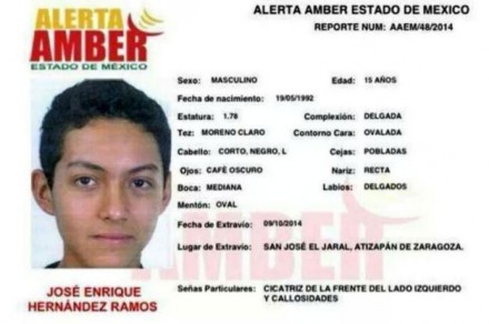 Los familiares del adolescente denunciaron su desaparición el jueves 9 y el viernes 10 la Procuraduría General de Justicia del Estado de México (PGJEM) activó la Alerta Ámber.