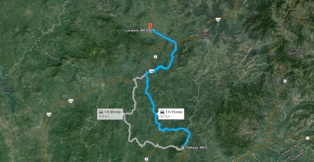 Luvianos se ubica aproximadamente a 70 kilómetros de Tlatlaya.