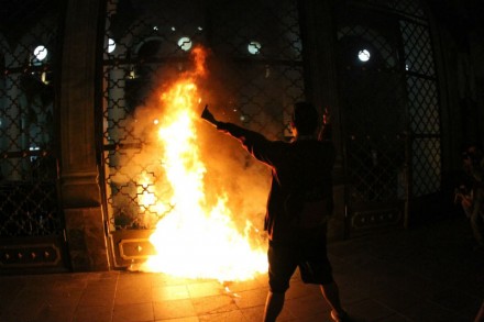 Sólo en Xalapa estudiantes normalistas, de la Universidad Veracruzana, anarquistas y activistas que salieron a marchar por las calles de la capital del estado, prendieron fuego con palos y bolas de trapo con gasolina a la puerta de la entrada principal del Palacio de Gobierno donde despacha Javier Duarte.