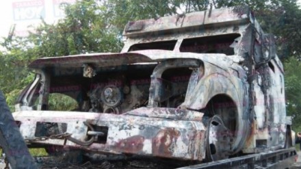 Los guardias avisaron a las autoridades, pero llegaron cuando la camioneta de valores estaba totalmente calcinada.