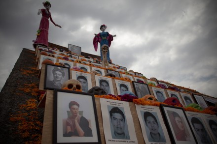 En la ciudad de Juchitán, los estudiantes del Instituto Tecnológico del Istmo (ITI) suspendieron actividades académicas en el plantel y colocaron 43 sillas afuera de las instalaciones con las fotografías de los normalistas desaparecidos.