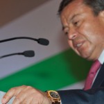 MÉXICO, D.F. (proceso.com.mx).- El líder nacional del PRI, César Camacho, lució un reloj Patek Philippe modelo Nautilus 5712R, con un precio de al menos 609 mil 143 pesos, durante la inauguración del Congreso Internacional Sociedad Civil y Partidos Políticos.