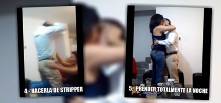 En el quinto y último paso, “Prender totalmente la noche”, se ve al aspirante a alcalde besando y abrazando a la mujer vestida de negro, mientras que la de rojo grita “asquerosos puercos”.