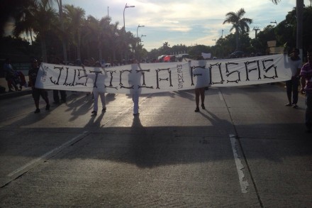 Estudiantes y miembros del magisterio disidente recibieron a los familiares de las víctimas sobre la avenida costera Miguel Alemán, a la altura del parque Papagayo.