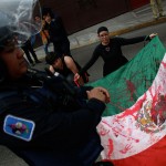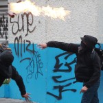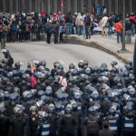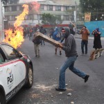Granaderos y encapuchados se enfrentan cerca del Aeropuerto