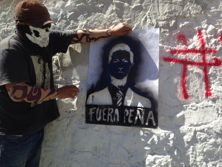 La movilización comenzó cerca de las 11:30 horas y la demanda principal es exigir la presentación con vida de los 43 normalistas desaparecidos de Ayotzinapa.