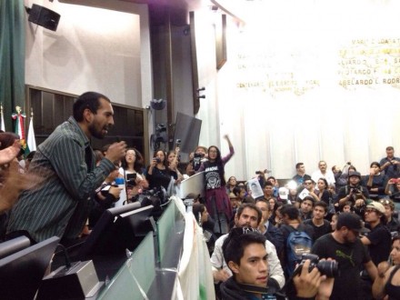 HERMOSILLO, Son. (proceso.com.mx) Alrededor de cinco mil manifestantes de la Asamblea General Estudiantil de la Universidad de Sonora junto con los padres de las víctimas de la guardería ABC, así como damnificados por el derrame minero del río Sonora y miembros de la sociedad civil tomaron el Congreso local al mediodía de este jueves en apoyo a la cuarta jornada de acciones globales por la desaparición forzada de los 43 normalistas de Ayotzinapa.