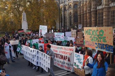 En Londres, el miércoles 19 y como parte de una masiva manifestación contra el arancel universitario y por una educación libre en Gran Bretaña, más de medio centenar de personas marcharon por la situación de los normalistas de Ayotzinapa.