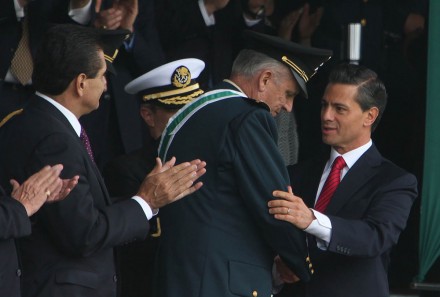 “Lo que los mexicanos demandan es que la ley se cumpla (y) que prevalezca el orden”, dijo Peña en un elogioso discurso a las Fuerzas Armadas en el campo militar Marte, en donde tuvo que celebrar el CIV aniversario de la Revolución Mexicana porque el Zócalo de la ciudad de México esperaba la llegada, como fue, de miles de personas que le exigen a su gobierno la presentación con vida de los estudiantes.