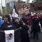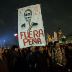 Los lemas de apoyo a los normalistas desaparecidos, así como los “¡Fuera Peña!” retumbaron en las estrechas calles del Centro Histórico, mientras que los exhortos de “¡Justicia!” se repetían en la plancha del Zócalo, atiborrada de manifestantes.
