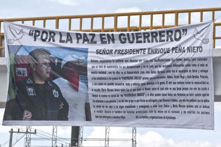 CHILPANCINGO, Gro. (proceso.com.mx).- Al menos dos mantas dirigidas al presidente Enrique Peña Nieto fueron dejadas en distintos puntos de esta ciudad donde acusan al alcalde priista Mario Moreno Arcos y al subsecretario de Seguridad Pública estatal, Juan José Gatica, de participar en la desaparición de los 43 normalistas de Ayotzinapa y de tener nexos con el grupo delictivo Guerreros Unidos.