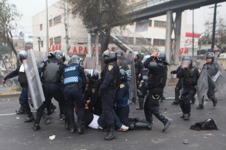 MÉXICO, D.F. (apro).- La red Global #AYotzinapaSomosTodos condenó el uso excesivo de la fuerza pública y las violaciones a las garantías penales de los detenidos el jueves 20 de noviembre, cuyo objetivo es, denuncia, “desincentivar y reprimir la protesta social”.