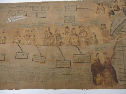 Esta foto, en la que se ve una escena de la Tira de Ixtepeji, era la copia de una placa perdida, hecha probablemente durante la venta del documento, pues llevaba el nombre de Constantino Rickards, el cónsul inglés en Oaxaca que la compró durante la Revolución.