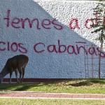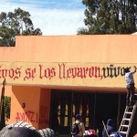 Luego realizaron un mitin en el estacionamiento del acceso de la puerta tres del inmueble, donde lanzaron consignas en contra de las autoridades por la criminal indolencia que han asumido frente al caso Ayotzinapa.