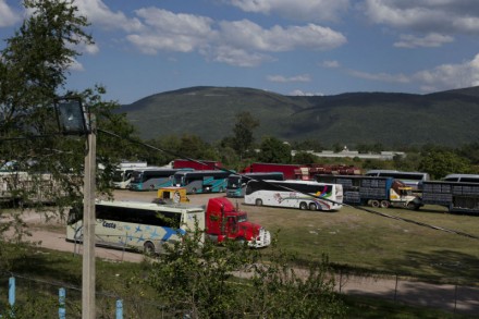 De acuerdo con información de The Associated Press, los conductores viven en el campo de futbol de la Normal y duermen en los compartimientos de sus vehículos, cuyos parabrisas utilizan para secar su ropa.