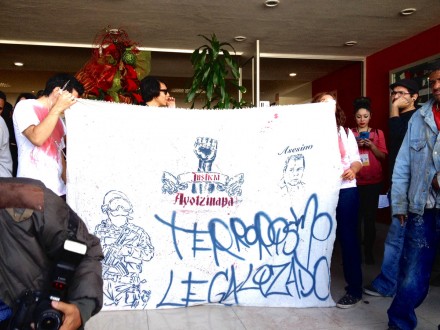 Luego de dar a conocer las actividades que efectuarán el próximo miércoles 5 de diciembre en solidaridad con la quinta jornada de acciones globales por la desaparición de los 43 normalistas de Ayotzinapa, los inconformes ingresaron a las oficinas priistas cerca del mediodía para dialogar y discutir con el dirigente estatal, Alfonso Elías, sobre las deficiencias que presenta la administración del presidente Enrique Peña Nieto al cumplirse este lunes dos años de su gestión.