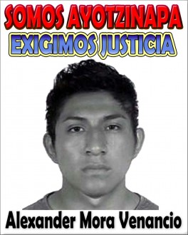 “Compañeros a todos los que nos han apoyado soy Alexander Mora Venancio. A través de esta voz les hablo soy uno de los 43 caídos del día 26 de septiembre en manos del narcogobierno”.