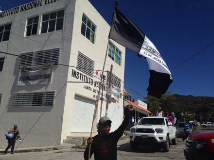 CHILPANCINGO, Gro., (proceso.com.mx).- Integrantes del magisterio disidente tomaron varias sedes del Instituto Nacional Electoral (INE) en esta capital para advertir que no permitirán la celebración de las elecciones en tanto no haya justicia por la desaparición de 43 normalistas en Ayotzinapa.