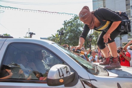 El alcalde de Acapulco, Luis Walton, retenido por manifestantes.