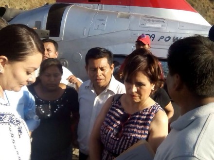 CHILPANCINGO, Gro. (apro).- El helicóptero donde viajaba la comitiva de la titular de la Sedesol, Rosario Robles Berlanga, y del gobernador Rogelio Ortega Martínez, sufrió un percance durante una gira de trabajo en la región de la Montaña.