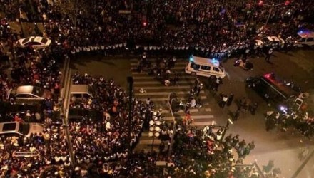 Decenas de heridos llegaban al hospital No.1 de Shangai mientras la Policía local trataba de mantener el orden en la zona.