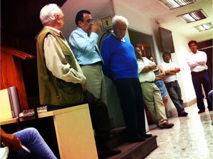 MEXICO, D.F. (proceso.com.mx).- Desde las escaleras que conducen a la dirección de Proceso, que él ocupó durante 20 años, Julio Scherer García habló a los trabajadores del semanario que nos reunimos en la Redacción, en la planta baja de Fresas 13, indignados y tristes por el asesinato atroz de nuestra compañera Regina Martínez.